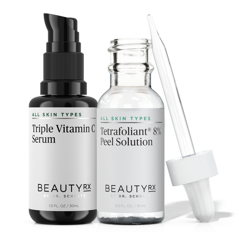 Through exfoliation and the use of an antioxidant, this powerful duo, The Peel & Glow Kit, is Dr. Schultz’s recipe for younger looking, glowing skin.