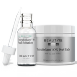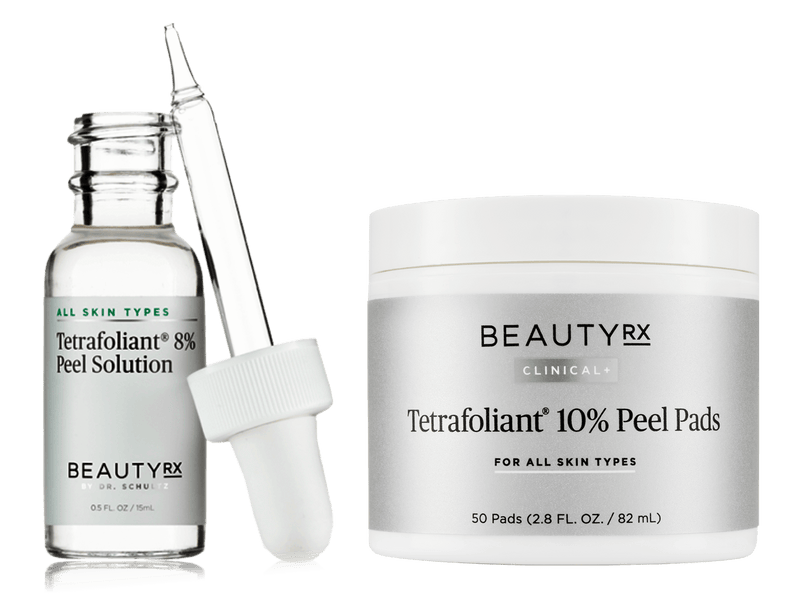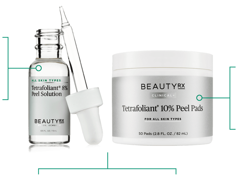 Tetrafoliant™ (only available from BeautyRx):Our proprietary complex of four reciprocally enabling exfoliating ingredients - Glycolic Acid, Salicylic Acid, Lactic Acid, and Phytic Acid - improves texture and tone.